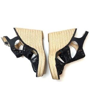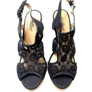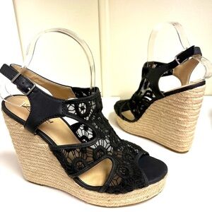 Lucky Brand LK-Riedel Black Crochet Lace Wedge Sandals.