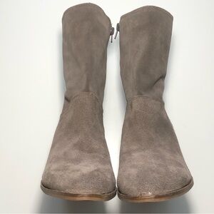 NEW Lucky Brand Sarey Falcon Grey Suede Low Block Heel Mid Height Boots size 12