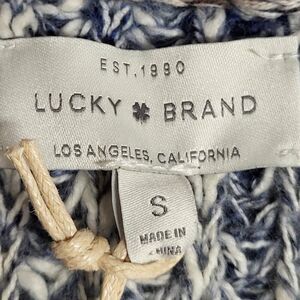 This Lucky Brand sweater offers understated style with thoughtfully crafted details. Designed for everyday wear or cozy layering, it features a soft ribbed knit with subtle horizontal striping in cool, natural tones — including sage green, taupe, ivory, gray, and hints of dusty slate blue.