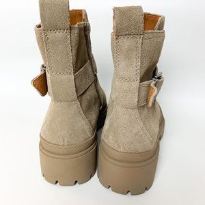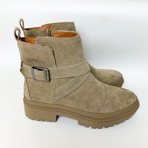 NEW Lucky Brand Tan Dune Elyton Suede Buckle Chunky Lug Sole Zip Ankle Boots in size 10