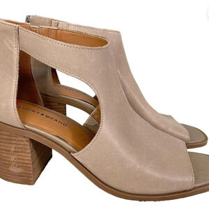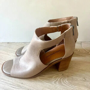 NEW Lucky Brand Tarrinax Leather Peep Toe Black Heels US 6.5