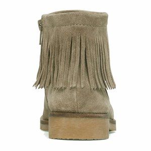NEW Lucky Brand Women Galley Brindle Oiled Suede Zip Fringe Dress Ankle Bootie