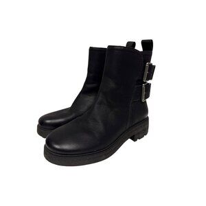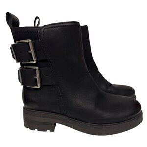 NEW Lucky Brand Women's Boots Candre Motorcycle Black Buckle Cycle Grunge 6.5