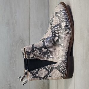 Dual side goring offers this pull-on Chelsea boot the perfect fit! Sizing: True to size. - Round toe - Leather construction - Allover snake print (LTBEIGE 03 only) - Dual side goring - Pull-on - Approx. 4.92" shaft height - Approx. 0.4" heel .Leather upper, synthetic sole