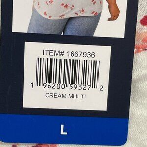 NEW Lucky Brand Womens L Floral Print T-Shirt White & Red Cotton/Modal