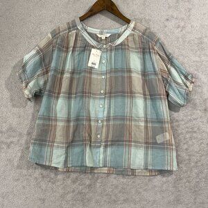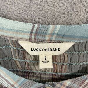 NEW Lucky Brand Womens S Cotton Plaid Smocked-S Ginger Root Plaid Sheer