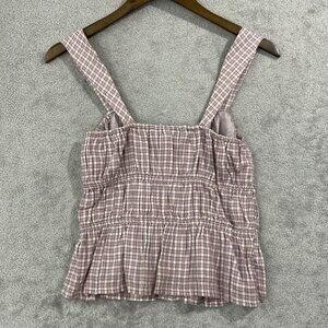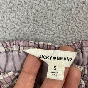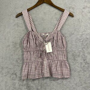 NEW Lucky Brand Womens S Drawstring Detail Cotton Purple Check Tank Crop Top