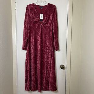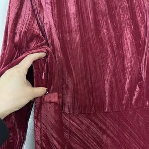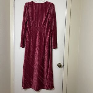 NEW! Lucy Paris Cranberry red velvet long sleeve v-neck midi dress Large