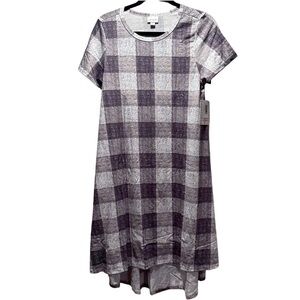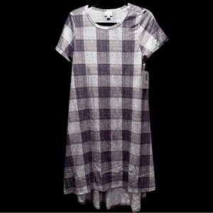 NEW LulaRoe Carly Long/Midi Dress High Low Hem Stretchy Comfortable Plaid Grey