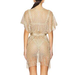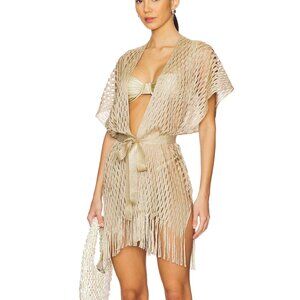 NEW Luli Fama Short Caftan in Gold Knit Swim Coverup Beach Robe