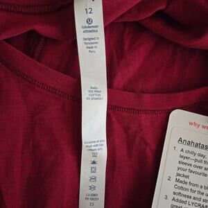 NEW Lululemon Anahatasana Long Sleeve Tee Size 12 Pima Slim Base Layer Thumbhole
