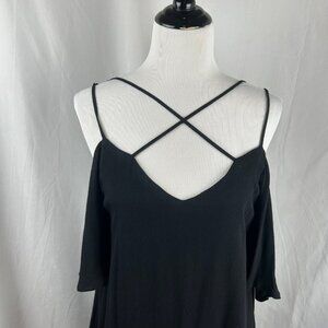 NEW Lulus Afterglow Strappy Cold Shoulder Shift Dress Women Large Black Mini