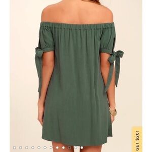 NEW Lulu’s Al Fresco Evenings Olive Green Off Shoulder Mini Dress Small Pullover.