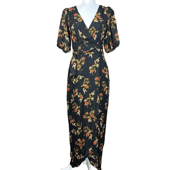 NEW Lulus Black Floral Wrap Dress S Autumnal Coquette Feminine Flirty Romantic