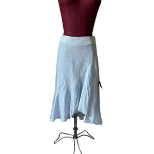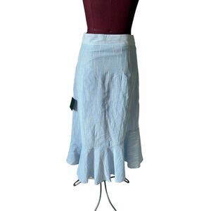 NEW Lulus By the Bay Light Blue White Striped Ruffled Midi Skirt size M Linen Blend