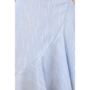 NEW Lulus By the Bay Light Blue White Striped Ruffled Midi Skirt size M Linen Bl