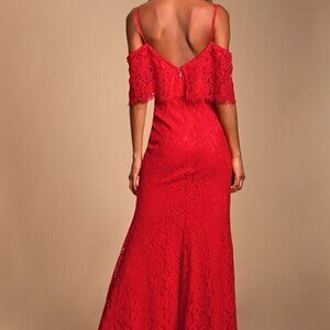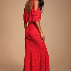 NEW Lulus Caterina Red Lace Off-the-Shoulder Maxi