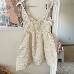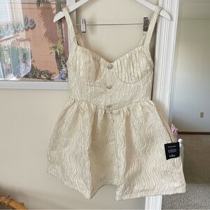 NEW Lulus Charmingly Precious Pleated Textured Bustier Mini Dress Cream Medium