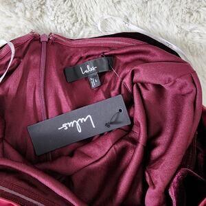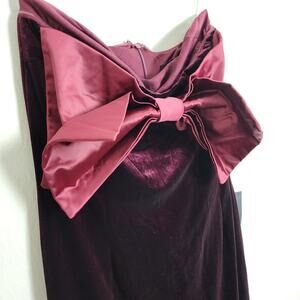 NEW Lulus Dramatic Stunner Burgundy Velvet Bow Strapless Maxi Dress