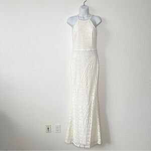 NEW Lulu's Ephemeral Allure Ivory Lace Maxi Wedding Bridal Dress Size Small