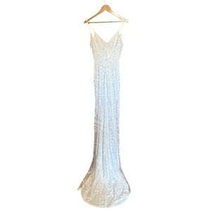 NEW Lulus Everlasting Passion White Sequin Beaded Backless Maxi Dress #1582