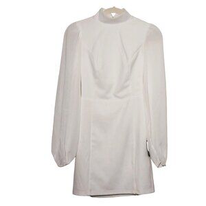 Keywords: white mini dress, backless dress, long sleeve dress, XS dress, Lulus dress, party dress, elegant mini dress, puff sleeve dress, high neck dress, women's fashion, open back dress, trendy mini dress, chic white dress, bridal party dress, vegas wedding, bachelorette party, bridal shower, wedding dress, mini wedding dress