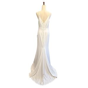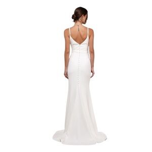 Today is the day! Let the Lulus Feeling of Forever White Sleeveless Mermaid Maxi Dress help you feel gorgeous on your big day! Medium-weight crepe knit shapes a flattering V-neckline and a princess-seamed bodice, all supported by slender adjustable spaghetti straps. A high, fitted waist continues into a figure-skimming mermaid silhouette that ends at a flaring maxi hem with a romantic train at the back. Put your gorgeous tresses in an updo to reveal a V-back above a faux button placket that accents along the back. Hidden back zipper/clasp.