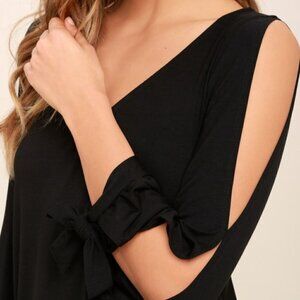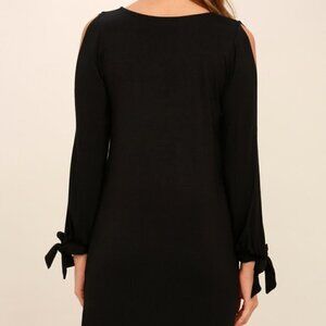 There's so many things we want to say about the Lulus Glory of Love Black Shift Dress, but we'll just let it speak for itself! Soft jersey knit falls from a V-neck into a relaxed, shift silhouette framed by long sleeves with trendy, cold shoulder cutouts and tying cuffs.