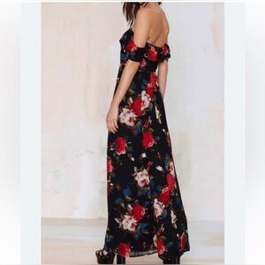 NEW Lulus I Care Black Floral Maxi Dress Off Shoulder Formal Black Red Small NWT
