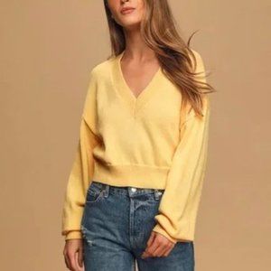 NEW Lulus Just a Moment Light Yellow V-Neck Cropped Sweater M