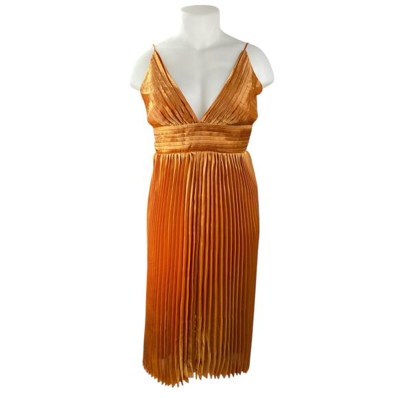 NEW Lulus Orange Silk Pleated Sleeveless V Neck Midi Camisole Tank Slip Dress XL