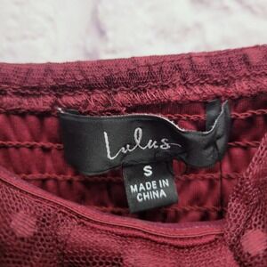 NEW Lulus Sweet Amor Tulle Swiss Dot Tiered Bustier Midi Dress Size S Burgundy