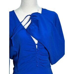 NEW Lulus Womens Royal Blue Long Sleeve Ruched V-Neck Dress Sz XL Summer Stretch