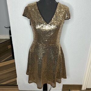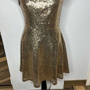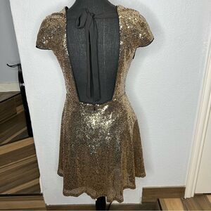 NEW! Lulu’s Holiday Party Ready Larsa Gold Sequin Backless Mini Dress Size S