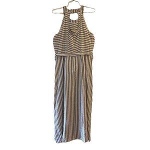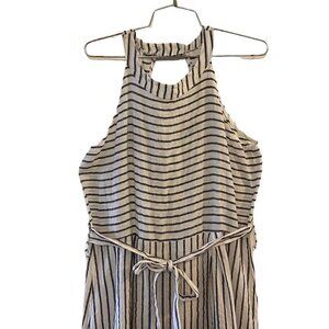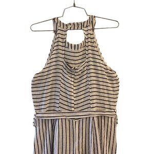 Lungo Larno Womens maxi Dress White Blue Stripe Belted Zip Cut Out Sleeveless XL New