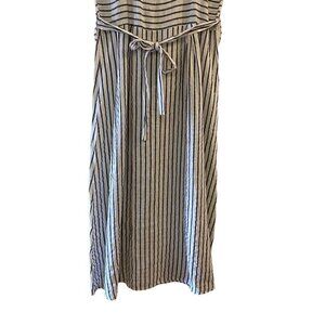 NEW Lungo Larno Maxi Dress White Blue Stripe Belted Zip Sleeveless Linen XL