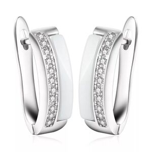 NEW Luxury White Ceramic Diamond Hoop Earrings