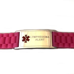 Lymphedema Alert is engraved on front side. Back side engraving with 3 options: