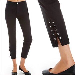 NEW Lysse Black Twill Lace Up Ankle Cropped High Rise Stretch Pants Sz. M