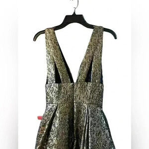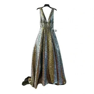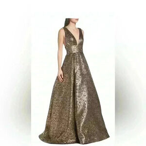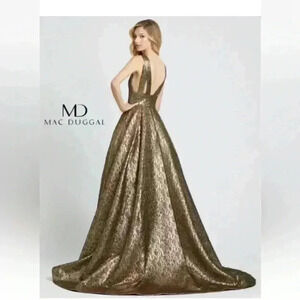 NEW MAC DUGGAL METALLIC JACQUARD ANTIQUE GOLD BALLGOWN sz 0