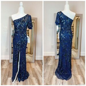 NEW MAC DUGGAL SEQUINED ONE SHOULDER EVENING GOWN