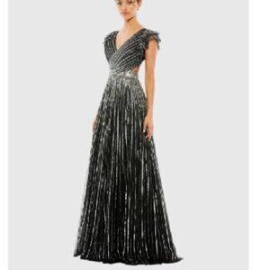 NEW MAC DUGGAL Sequined Cut Out Ruffled Cap Sleeve Lace Up Gown SIZE 8#2413*