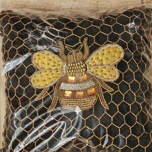 This is for a Mackenzie Childs Queen Bee Throw Pillow. This BEAUTIFUL pillow was purchased directly from Mackenzie Childs. CHARMING bee accented with Honeycomb pattern. Made of black velvet-like material and accented with beads. It comes from a non-smoking. This comes in the original bag. Pictures of actual item.