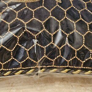 NEW MACKENZIE CHILDS QUEEN BEE HONEYCOMB BEADED BLACK VELVET THROW ACCENT PILLOW