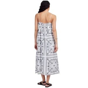 NWT MADEWELL Embroidered Deep V-Neck Midi Dress in Bandana White & Dark Navy Size Small