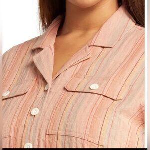 An open camp-style collar and chest patch pockets give this striped shirt a real laid-back quality. Crafted from a crinkled blend of cotton and linen, it's a lightweight style enhanced with a touch of stretch.