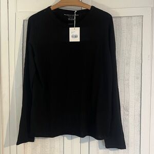 NEW MAJESTIC FILATURES cashmere long sleeve crew top in black size M (3)