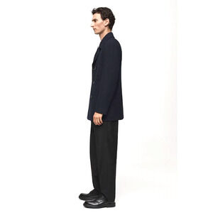 * Wool mix fabric. Regular fit. Short Design. Wide lapel collar. Eight-button double-breasted closure. Inner counterbutton for better grip of the outer button. Back-slit hem. Inner lining. Interior pocket. Two front welt pockets.