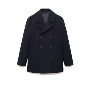 NEW MANGO MNG BLACK DOUBLE BREASTED WOOL BUTTON PEACOAT JACKET COAT SZ M