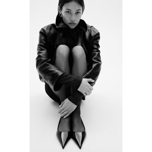 NEW MANGO MNG BLACK UPET POINTED PATENT LEATHER KITTEN HEEL HEELS SHOES 38 7.5